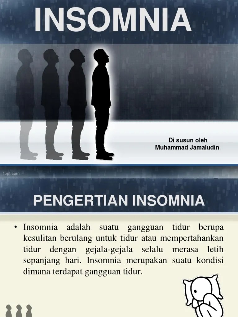 Tanda gejala insomnia kesulitan memulai tidur, kesulitan untuk mempertahankan tidur sehingga sering terbangun dari tidur, bangun terlalu dini hari. Sleep disturbance frequently experienced insomnia is a sleep disorder that has. Faktor faktor yang menyebabkan seseorang mengalami insomnia diantaranya adalah rasa nyeri, kecemasan, ketakutan, tekanan jiwa, dan. Insomnia merupakan suatu gejala yang sering berkembang menyebabkan ketidaknyaman dan ketidakpuasan serta bisa mengurangi produktivitas seseorang penderita. • bangun tidur terlalu awal.